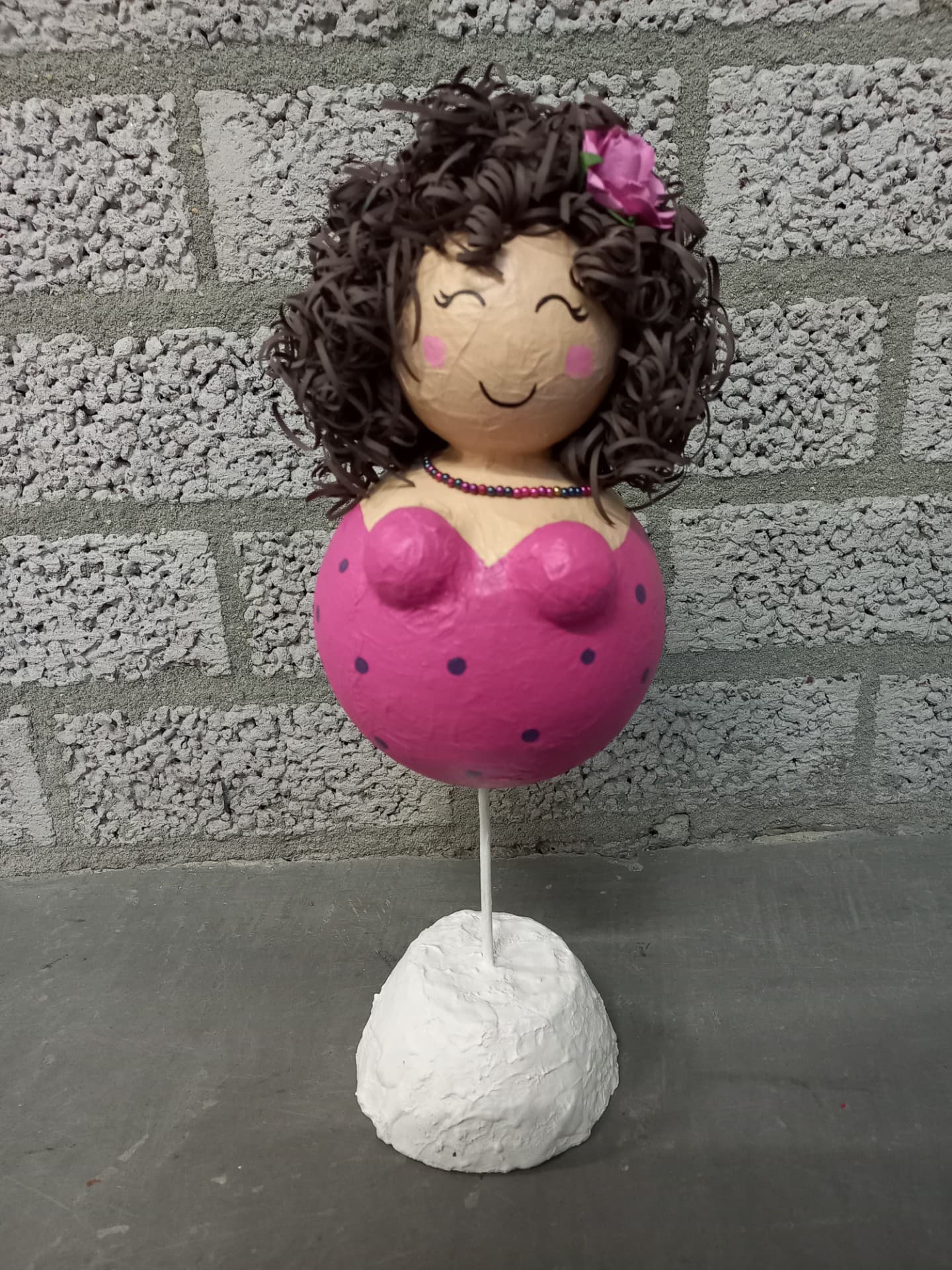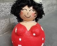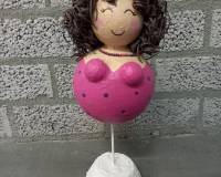 Je beschildert de dikke dame naar eigen inzicht, kan er een bijpassende ketting voor maken en steekt de haren in die al voorgemaakt zijn.